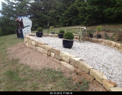 Den Weg neu geschotter und eine Sandsteinmauer trocken aufgesetzt